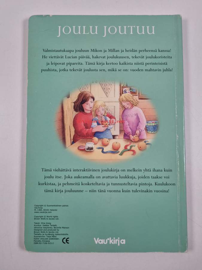 Muu(t) tekijä(t): Taija (suom.) Mård, Debbie (kuvitus) Tarbett ym.Asiasanat: joulu, koskettelukirjat, luukkukirjat