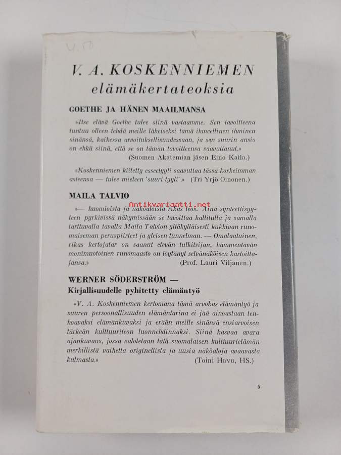 Hyvä. Tarkempi kuntoluokka: K3+ ; Hieman kulumaa kansissa. Kansipaperin kunto: jonkin verran kulumaa/pienoisia repeämiä