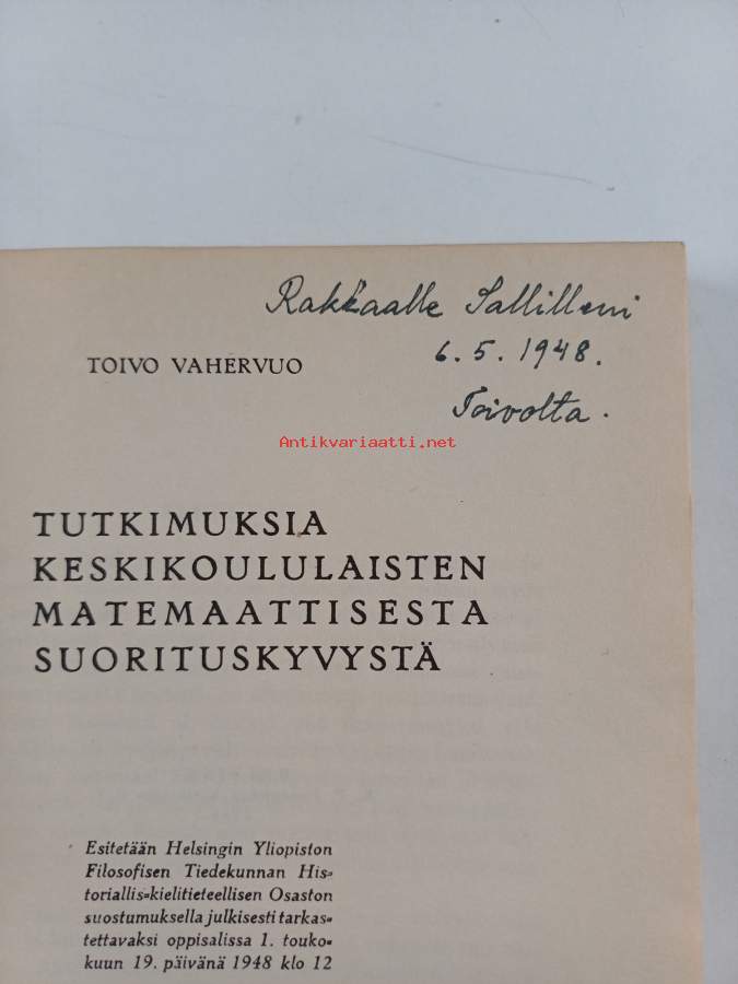 Tutkimuksia keskikoululaisten matemaattisesta suorituskyvystä (signeerattu, tekijän omiste)