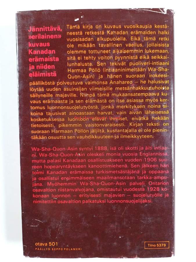 Muu(t) tekijä(t): Kaija Kauppi, Hugh EayrsAlkuteos: Pilgrims of the wildAsiasanat: intiaanit, eläinsuojelu, luonnonsuojelu, erämaat, majavat