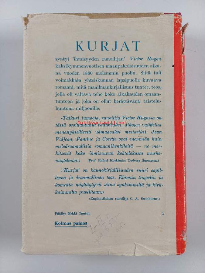 Kurjat : romaani. 1,2 ja 3 /Hugo, Victor , kirjoittaja, ; Werner Söderström osakeyhtiö , kustantajaWSOY 1974