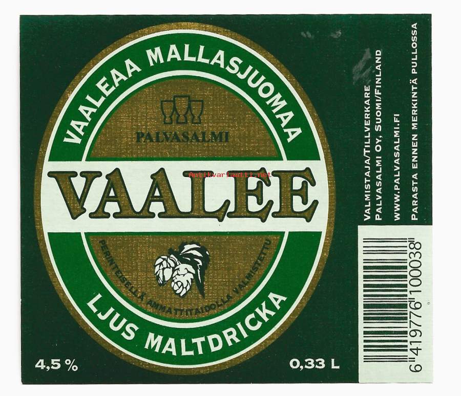VAALEE vaaleaa mallasjuomaa - olutetiketti