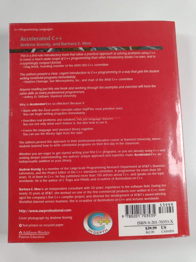 Muu(t) tekijä(t): Barbara E. MooSarja: C++ in-depth seriesAsiasanat: ohjelmointi, ohjelmointikielet, programmeringsspråk, programmering, programming languages, C++ (ohjelmointikieli), C++ (programmeringsspråk)