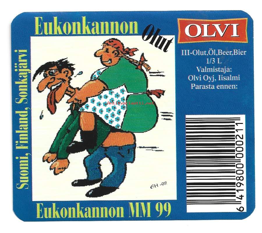 Olvi III Eukonkannon Olut MM 99 - olutetiketti