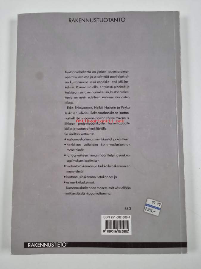 Muu(t) tekijä(t): Heikki Haveri, Pekka JeskanenMerkinnät: omistajamerkintäAsiasanat: kustannuslaskenta, työmaat, tuotanto, laskeminen, tarjoukset