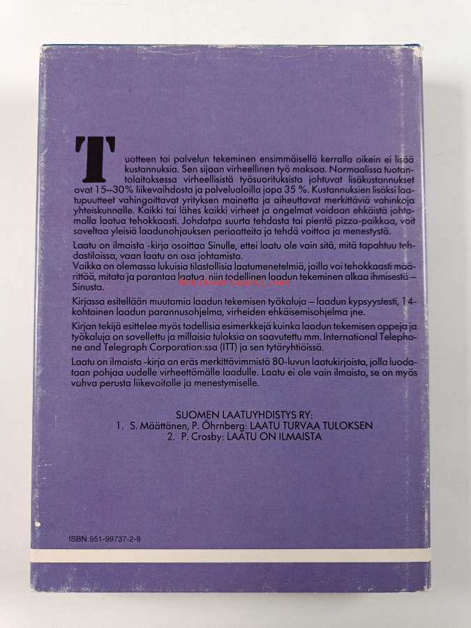 Muu(t) tekijä(t): Anna-Riitta VuorikoskiAlkuteos: Quality is free : the art of making quality certain