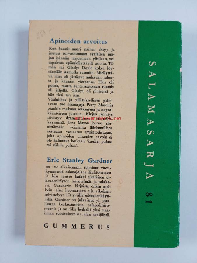 Muu(t) tekijä(t): Pentti KankaalaMerkinnät: omistajamerkintäSarja: Salamasarja 81Alkuteos: The case of the mythical monkeys