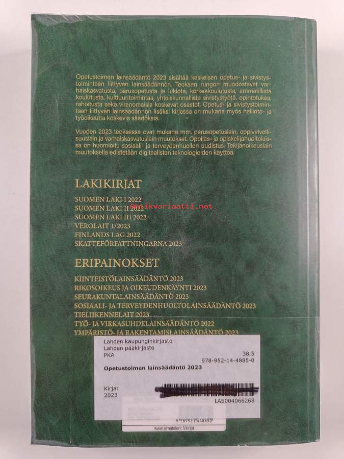 Tyydyttävä. Hieman kulumaa kansissa, kontaktimuovipäällystys, kirjaston poistokirja