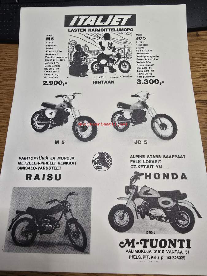 Italjet, raisu ja honda myyntiesite M-tuonti