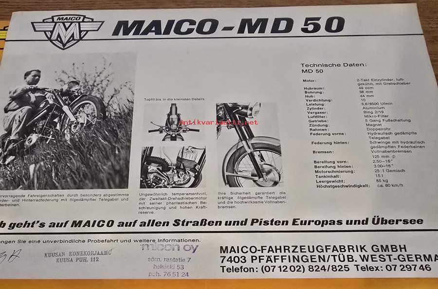 Maico Magnum II 250, 400, 450 Moto Cross -myyntiesite / brochure