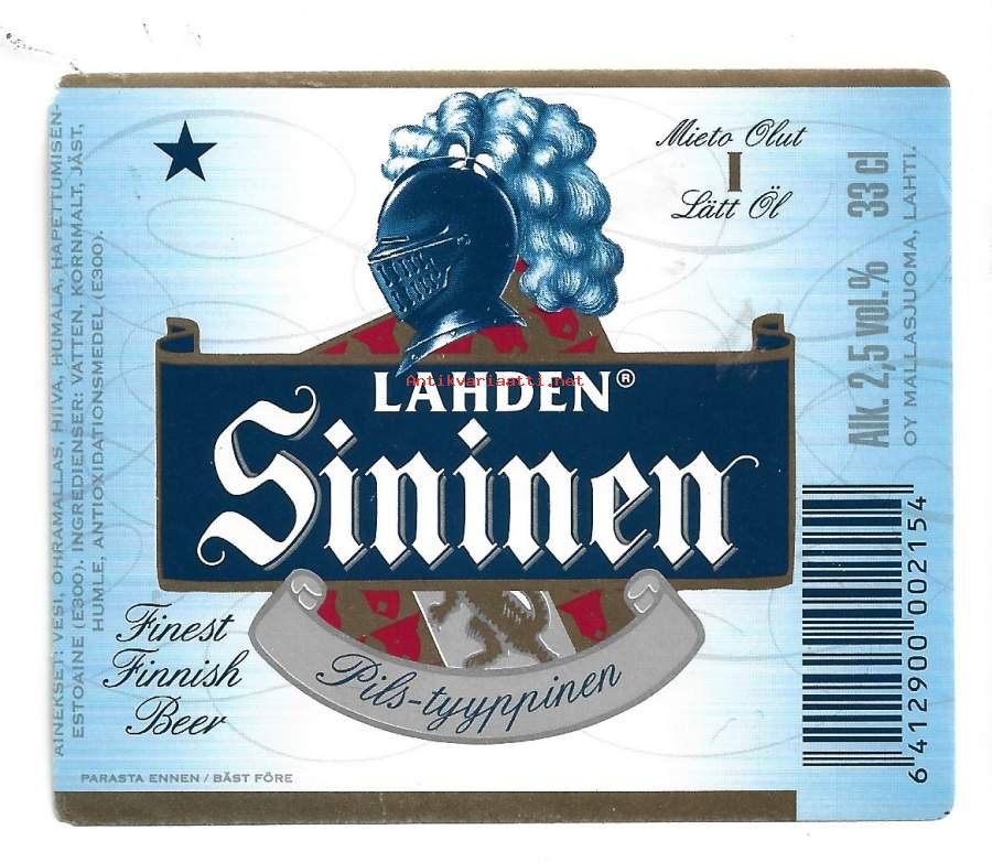 Lahden Sininen Mieto I olut - olutetiketti