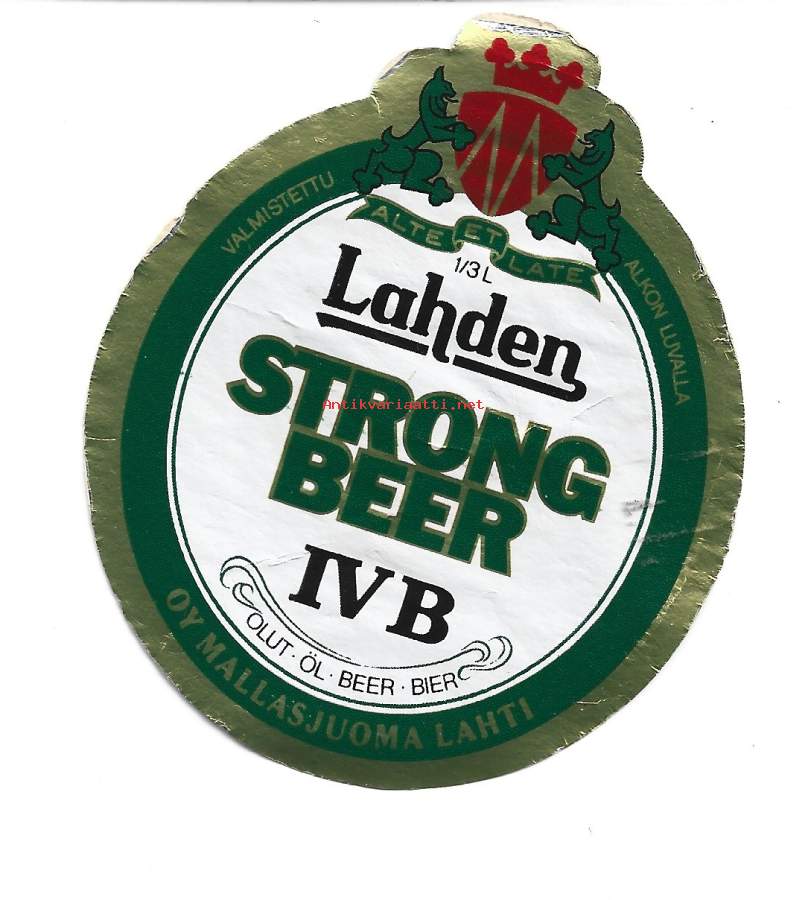 Lahden Strong Beer IV B- olutetiketti