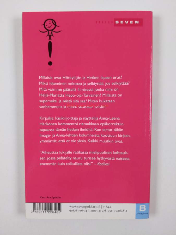 Hyvä. Tarkempi kuntoluokka: K3+ ; Hieman kulumaa reunoilla ja kulmissa, selkämyksessä aavistus vinoutta