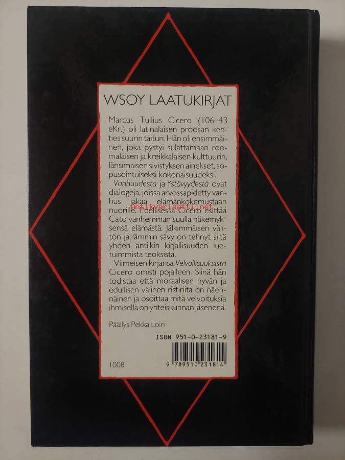 Muu(t) tekijä(t): Marja Itkonen-KailaSarja: LaatukirjatAlkuteos: Cato maior de senectute ; Laelius de amicitia ; De officiisAsiasanat: filosofia antiikki, stoalaisuus