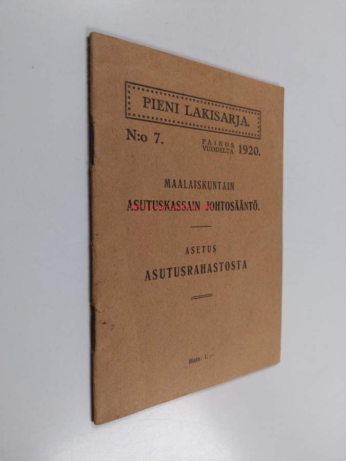 Maalaiskuntain asutuskassain johtosääntö : asetus asutusrahastosta