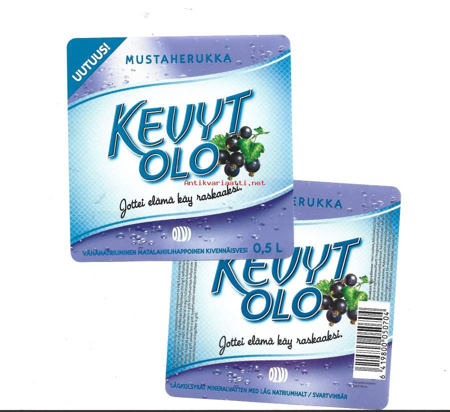 Kevyt Olo Mustaherukka - juomaetiketti
