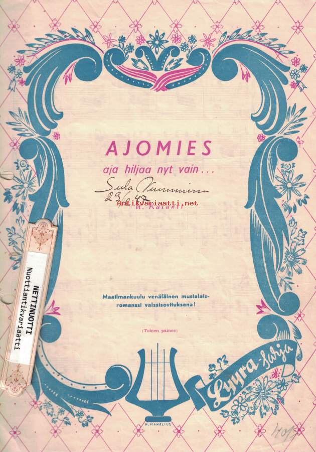 Ajomies aja hiljaa nyt vain,, fox-trot nuotit