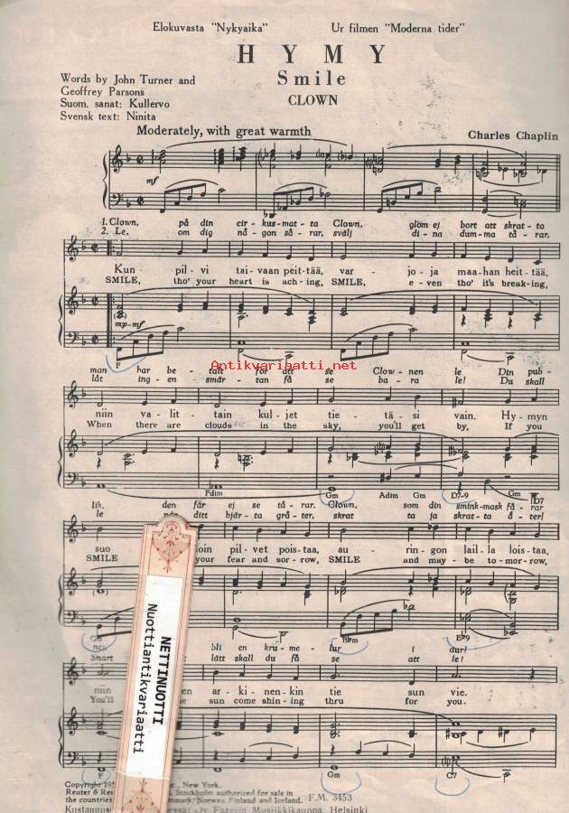 Nuotti elokuvasta Nykyaika.- Postitus 3,80€