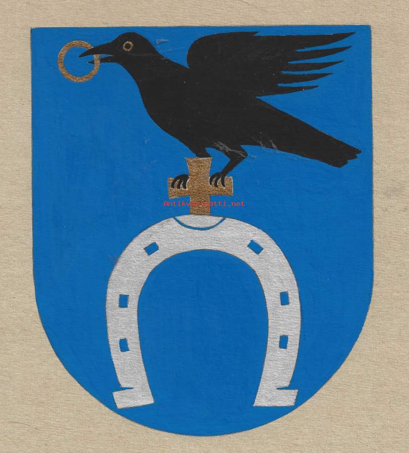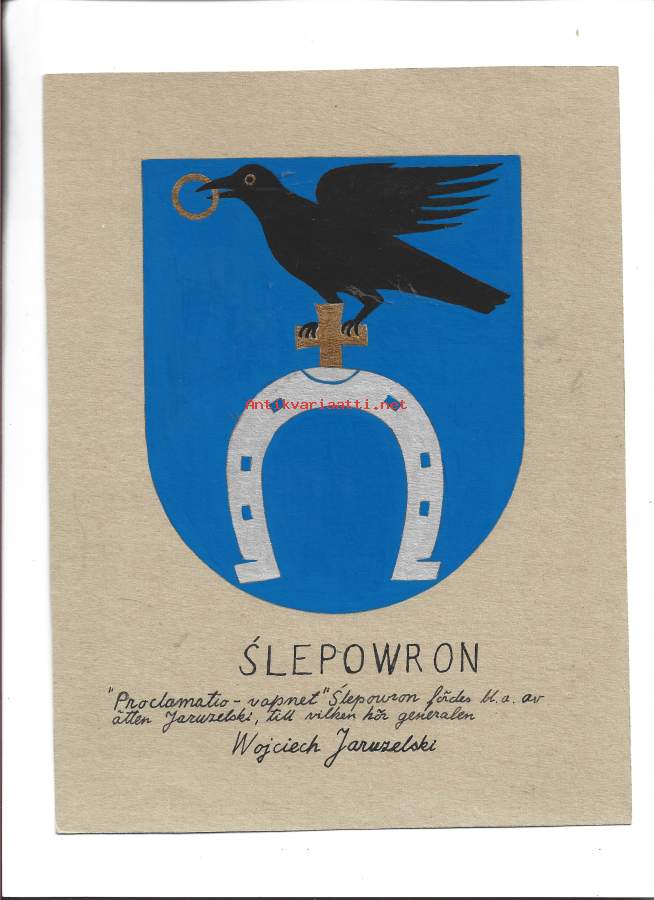 Slepowron sukuvaakuna alkuperäinen guassimaalaus pahville 22x16 cm