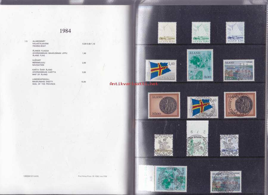 Åländska frimärken 1984 – Ahvenanmaan vuosilajitelma. Postimerkit postituoreina ja ensipäiväleimattuina, mukana myös kolme FDC‑kuorta.