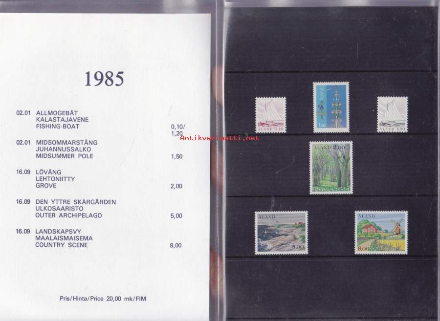 Åländska frimärken 1985 – Ahvenanmaan postimerkkien vuosilajitelma. Postimerkit postituoreina**