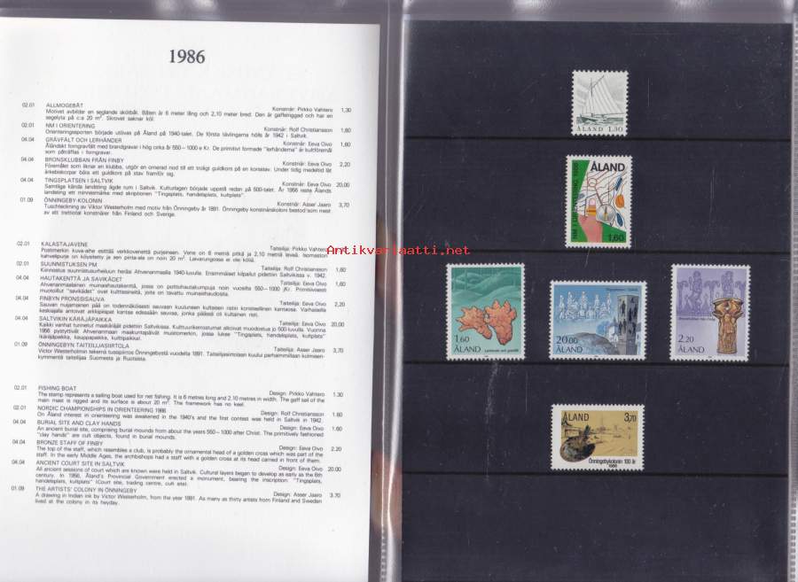 Åländska frimärken 1986 – Ahvenanmaan vuosilajitelma. Postimerkit postituoreina ** mukana myös kaikki 4 FDC‑kuorta.(LAPE FDC 34€, merkit 8€)