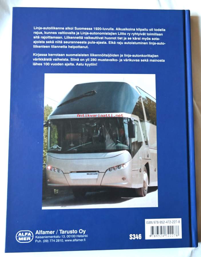 Kirja vie lukijan yli satavuotiseen linja-autoilun historiaan. Sen vaikeaan ja villiin alkutaipaleeseen. Sota aikaan häkäpönttöineen ja pula-aikoineen. Sitä seuranneeseen nousukauteen, jossa alati kasvava henkilöautojen lukumäärä on aiheuttanut omat haasteensa.Kuvituksessa on käytetty osin alkuperäisiä kuvia ja mainoksia sekä osin tapahtumista kuvattua museokalustoa. Kirjassa on mm. korirakentamisesta, eri tehtaista sekä liikennöitsijöistä.