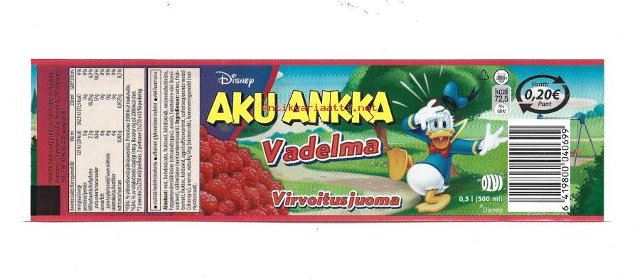 Aku Ankka Vadelma - juomaetiketti tuote-etiketti