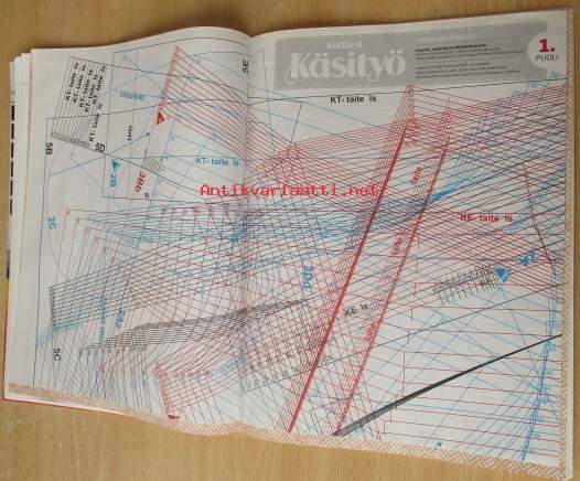 Kaava-arkki mukana, kiinni lehdessä, lehti siisti ehjä, takakannessa yläreunasta pieni pala pois, Postitus kirjeapakettina