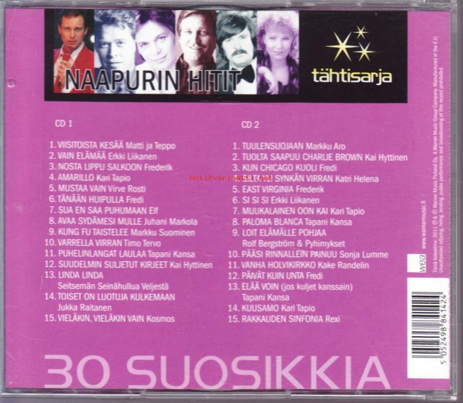 CD - Naapurin hitit 2CD, 2021. Sis, 30 suosikkia (Iskelmä, suomenkielinen rock, pop rock). Tähtisarja.