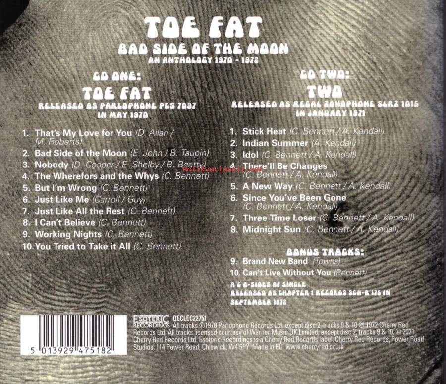 Toe Fat -yhtyeen molemmat LP:t (Toe Fat 1970 ja Two 1971).Ykköslevyllä mukana tulevat Uriah Heep miehet Ken Hensley ja Lee Kerslake. Tupla-CD.