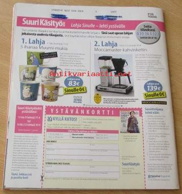 Kaava-arkit mukana irti lehdestä, lehti siisti ehjä, takakannessa edellisen omistajan nimi ylivedetty kynällä, Postitus Kirjepakettina