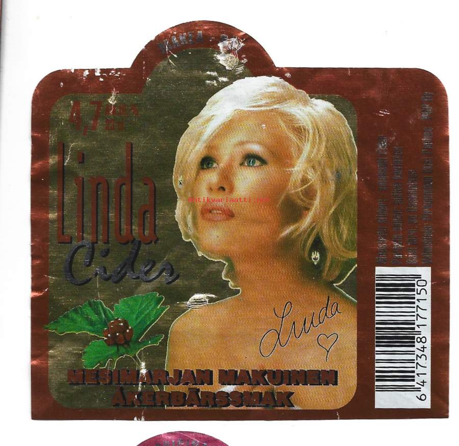 Linda Cider mesimarjan makuinen siiderietiketti viinaetiketti