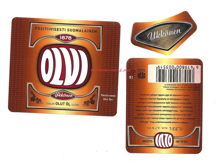 Olvi Ruuti III ja IV A sekä Olvi Ykkönen olutetiketti 3 eril