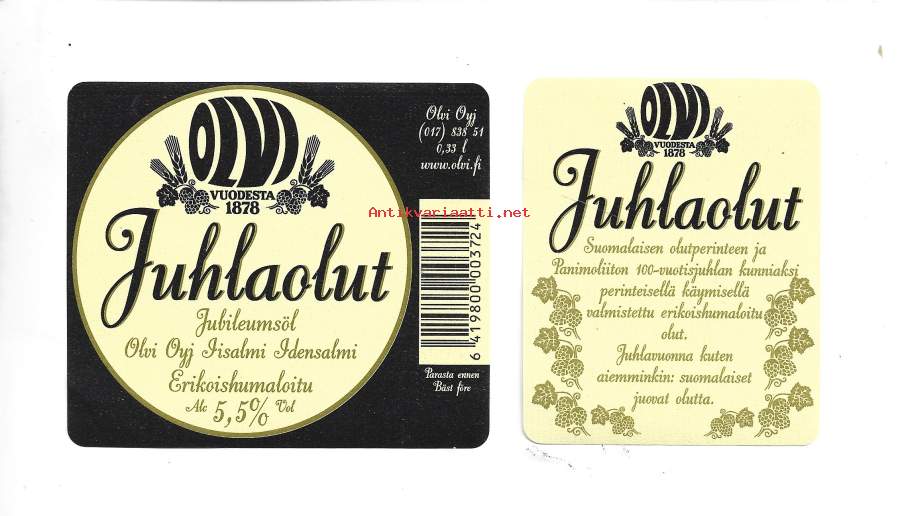 Juhlaolut ja Olvi III ja IVA olutetiketti 4 eril