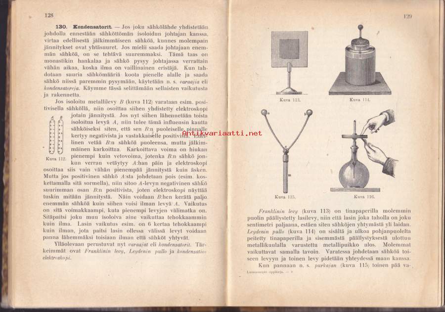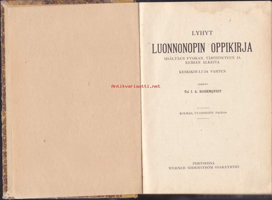 Lyhyt luonnonopin oppikirja keskikoulua varten, 1917. Sisältäen fysiikan, tähtitieteen ja kemian alkeita.