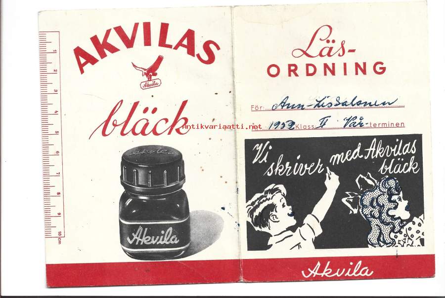 Akvilas Läsorning lukujärjestys täytetty 1952