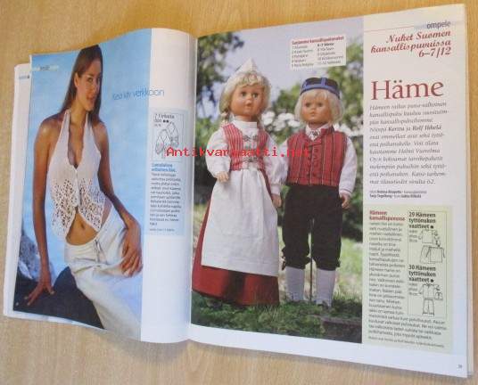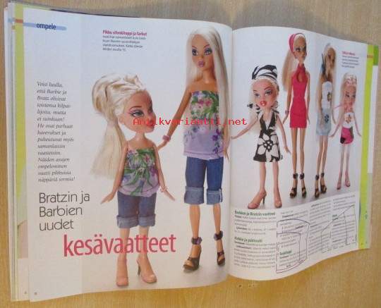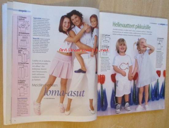 Kaava-arkit irti lehdestä ja liite lasten värikkäät kesä askartelut mukana, lehdessä Barbien uudet kesävaatteet, lehti siisti ehjä, edellisen omistajan nimi ylivedetty kynällä, Postitus kirjepakettina