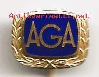 AGA AB:n (alkujaan Aktiebolaget Gas Accumulator) vintage-tyylinen rintamerkki. AGA oli vuonna 1904 perustettu merkittävä ruotsalainen teollisuusyhtiö, joka tunnettiin erityisesti teollisuuskaasuistaan sekä keksinnöistä kuten AGA-liesi ja Dalen-majakka.