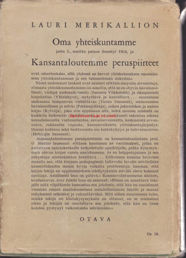 Tyydyttävä. Kansipaperi kulunut, alleviivauksia.Postin pikkupakettina 7,90 € v. 2026. Kannetaan kotiin.