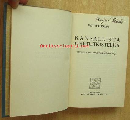 Kirja sivuiltaan siisti ehjä, edellisen omistajan nimi, Kansissa kulumaa ja selkämyksessä värimuutosta, Postitus kirjepakettina