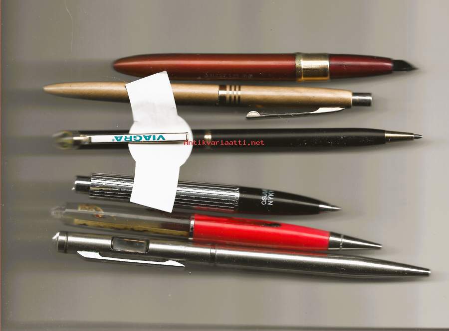 Mainoskyniä yms keräilykyniä 6 kpl erä mainoskynä