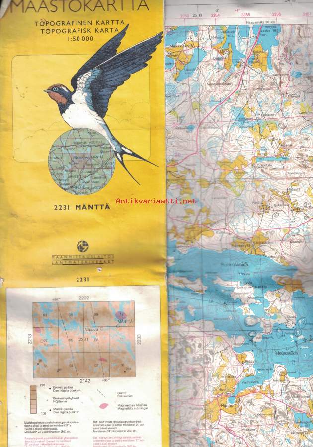 Maastokartta, topografinen kartta 1:50 000 Mänttä
