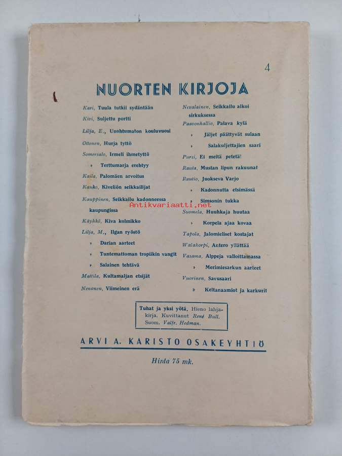 Satumaailma, värikuvallinen taruaarre nuorisolle. Toimittanut V. Hämeen-Anttila. P. 1941, seitsemästoista vuosikerta