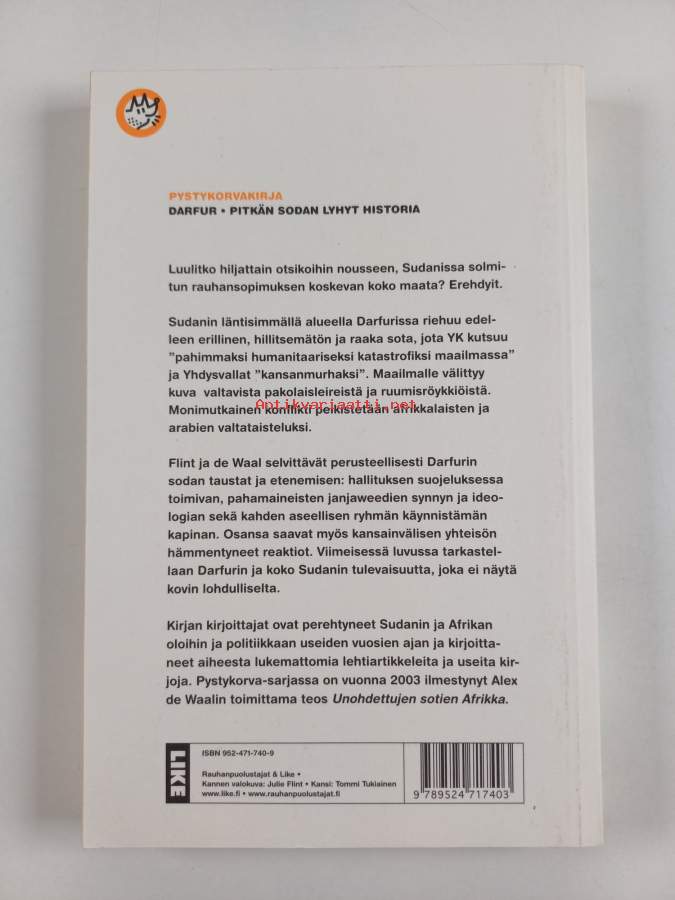 Muu(t) tekijä(t): Alex De Waal, Kirsi KomonenSarja: PystykorvakirjaAlkuteos: Darfur : a short history of a long warAsiasanat: poliittinen historia, poliittiset kriisit, sisällissodat, konfliktit, poliittinen väkivalta, afrikka, Sudan