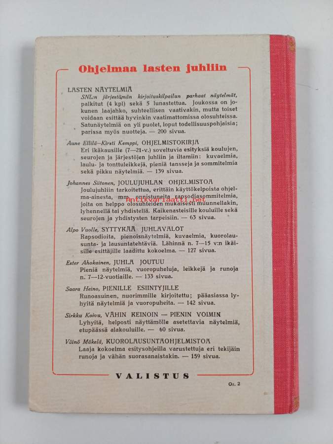 Muu(t) tekijä(t): Väinö HannikainenMerkinnät: omistajamerkintäAsiasanat: joulu, näytelmät, esitykset, koulujuhlat