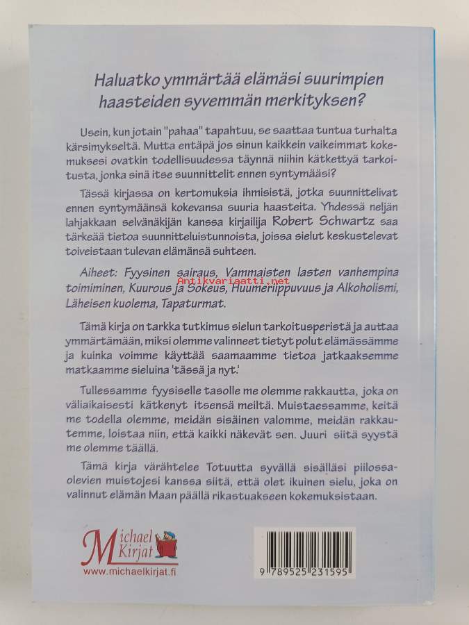 Muu(t) tekijä(t): Riitta AlexanderssonAlkuteos: Courageous souls : do we plan our life challenges before birthAsiasanat: jälleensyntyminen, selvänäkö, sielu, kohtalo
