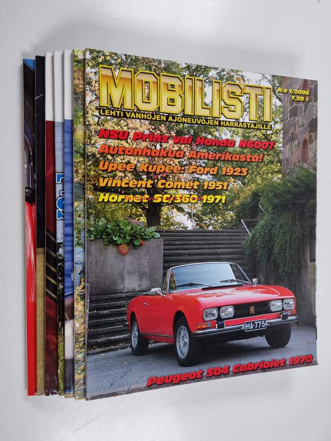 Hyvä. Pienoista kulumaa. Mobilisti-lehden vuosikerta 2006 yksittäisnumeroina, n:o 6 etukannessa hieman pintarepeämää ja tahraisuutta, tämän yksittäisen lehden kuntoluokka K3-, n:o 7 takakannessa jonkin verran pienoisia pintarepeämiä