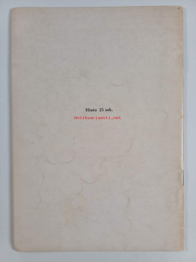 Tyydyttävä. Tarkempi kuntoluokka: K2+ ; Pienoista repeämää selkämyksessä, hieman kulumaa kansissa, selkämyksessä aavistus vinoutta