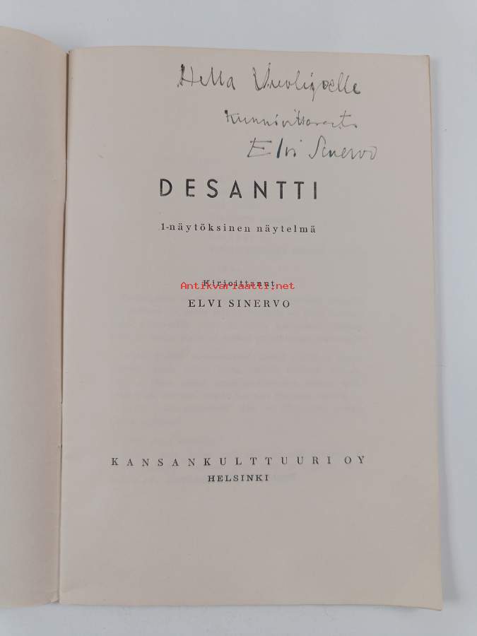 Desantti : 1-näytöksinen näytelmä (signeerattu)